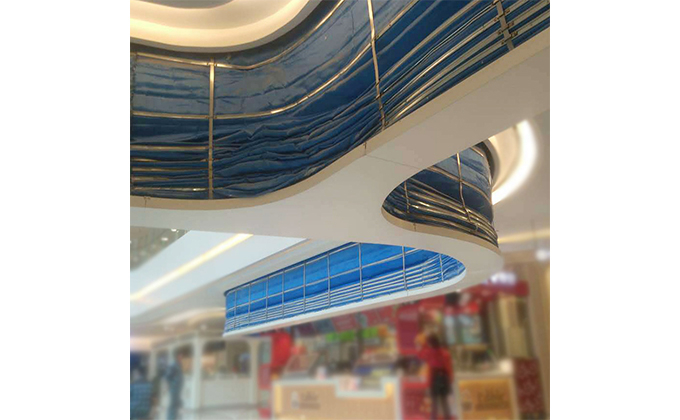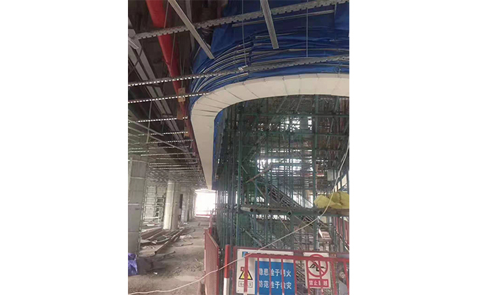 擋煙垂簾垂壁根據(jù)設(shè)計(jì)要求和現(xiàn)場(chǎng)實(shí)際情況采取如下施工順序:首先,搭設(shè)腳手架一放線(xiàn)一打眼--上脹栓一焊骨架。第二,吊件一安裝骨架…